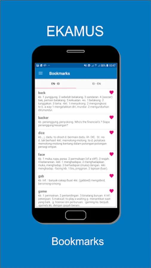 EKamus merupakan kamus offline bahasa Inggris - Indonesia dan sebaliknya. Aplikasi