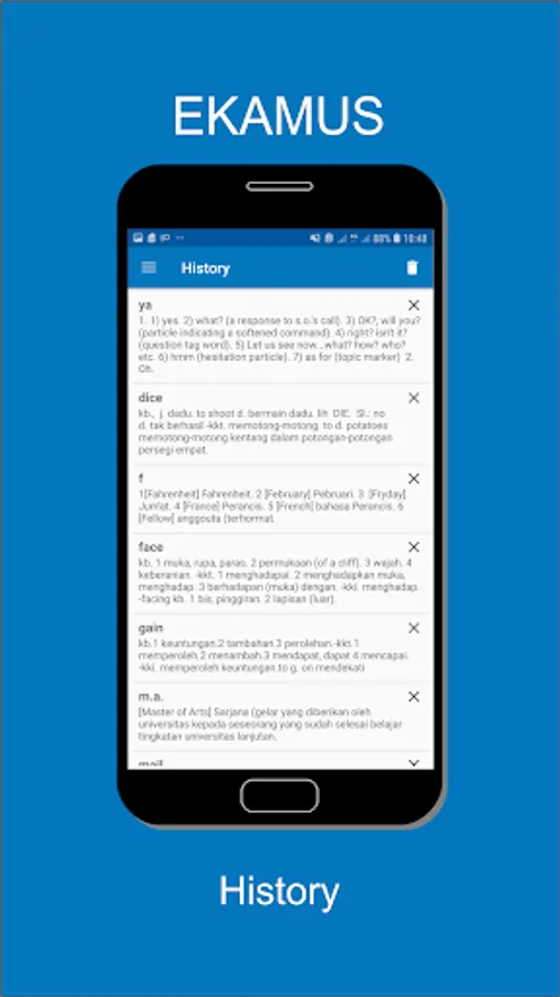 3. History, untuk melihat kembali kata-kata yang telah dicari
