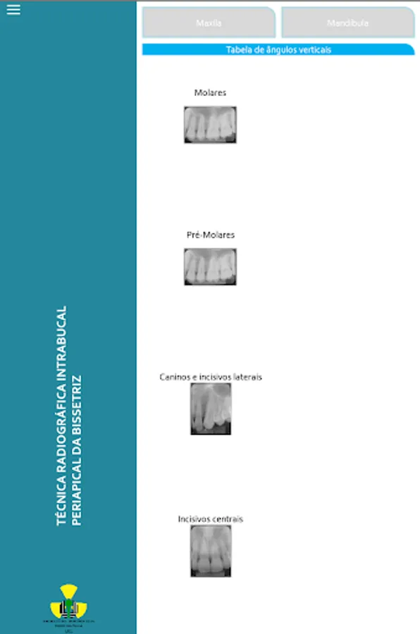 The application covers the intraoral techniques: Bisector Periapical, Periapical using the positioner, Interproximal and Occlusal (the latter two will be updated).