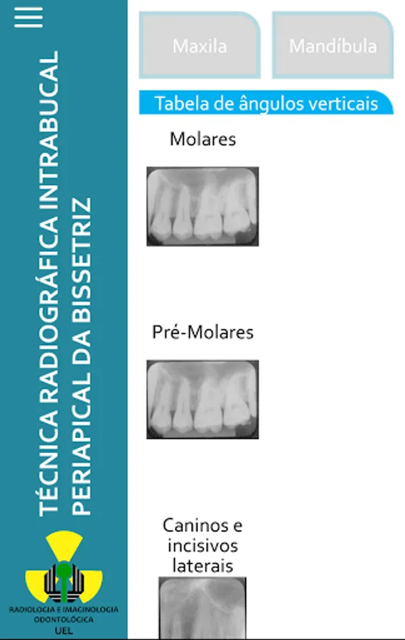 RADIODONTOUEL was created by students and professors of the Dentistry and Computer Science courses at the State University of Londrina (UEL), in order to integrate technology with education. The development of a dynamic application for mobile devices, as complementary teaching material, would allow consultation at the time of performing the technique in order to successfully obtain the radiograph.