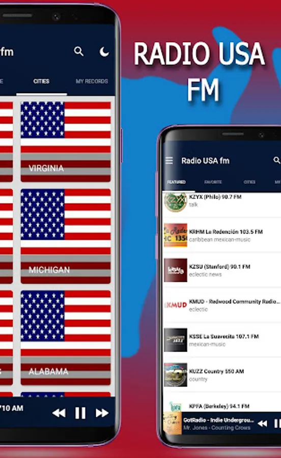 Our application allows you to listen live all the radio stations USA fm am and Internet radios of the United States. Choose what you want to hear: news, sports, music, and more!