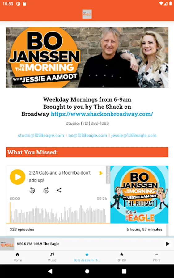 Check us out online at 1069eagle.com to find out about upcoming concerts, events and ways to win.