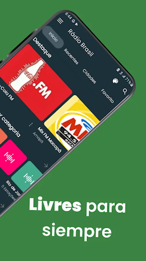 🗸 Escuchar la radio brazil en segundo plano mientras se utilizan otras aplicaciones.