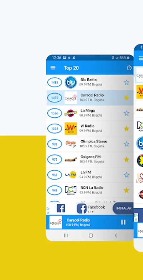 ✔️Blu Radio, ✔️Caracol Radio, ✔️La Mega, ✔️W Radio, ✔️Olimpica Stereo, ✔️Oxigeno FM, ✔️La FM, ✔️RCN La Radio, ✔️Bésame FM - Medellín, ✔️Tropicana, ✔️Radio Uno, ✔️RCN Antena 2, ✔️Candela Estereo, ✔️Amor FM, ✔️Rumba Stereo - Bogotá, ✔️El Sol, ✔️La X Electrónica, ✔️Vibra, ✔️La Cariñosa, ✔️Barranquilla Estereo, ✔️La 92, ✔️Radio Munera, ✔️Estrella Estéreo, ✔️Radio Paisa...