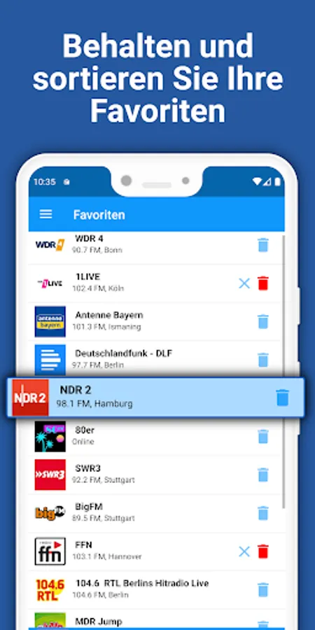 Radio Germany has more than 1300 of internet radio stations. Now you can listen to your favourite online radios everywhere, with just moving your finger☝ Best radio app in Germany!