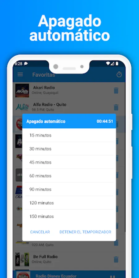 With the 💤Sleep function, you can program the app to turn off whenever you want. You can save your favorite stations in your ⭐favorites list to be able to access them quickly and sort them as you prefer. Access the 🔝 Top20 section to find out which stations users like best within the application. Search for the stations you want by name in the search bar. Or if you prefer, you can quickly find the radios from your city! 🜉 Share the best online radio application with your friends! With its simple and intuitive design, the ▶ player's console will allow you to control the reproduction from the notification window without having to enter the application. Listen to online radio while doing sports, at work or when cooking. Even if you are abroad! All these functions will make you enjoy a unique experience through a simple and easy to use interface. We periodically update all the stations so that they can always be heard without any problem.