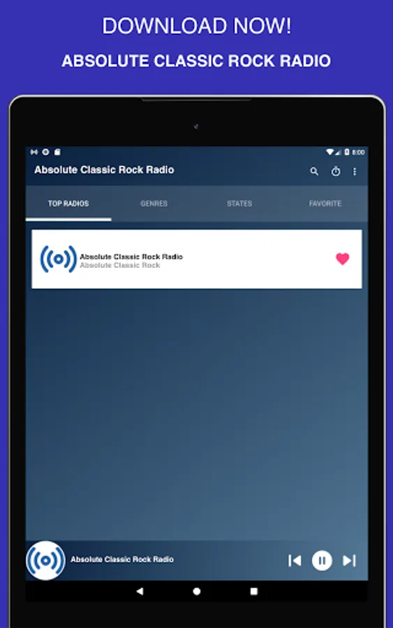 ⚠️ Attention: This application needs an internet connection, 3G / 4G or Wi-Fi networks. It is possible that some Absolute Classic Rock Radio App UK Free stations will not work because their stream is turned off.