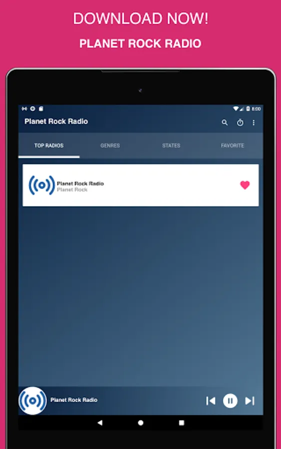 ⚠️ Attention: This application needs an internet connection, 3G / 4G or Wi-Fi networks. It is possible that some Planet Rock Radio stations will not work because their stream is turned off.