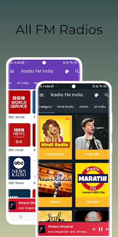 Please Note:- Radio FM India App requires an internet connection, 3G/4G/5G or Wi-Fi network in order to Listen Radio Stations. Some FM radio stations may not work/fail to play because their stream is temporarily offline.