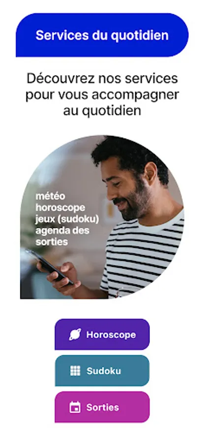 Thanks to here, you can also take advantage of customizable services to improve your daily life: weather forecast, outings diary, games, horoscope.