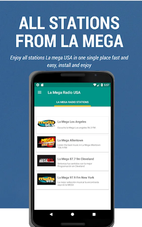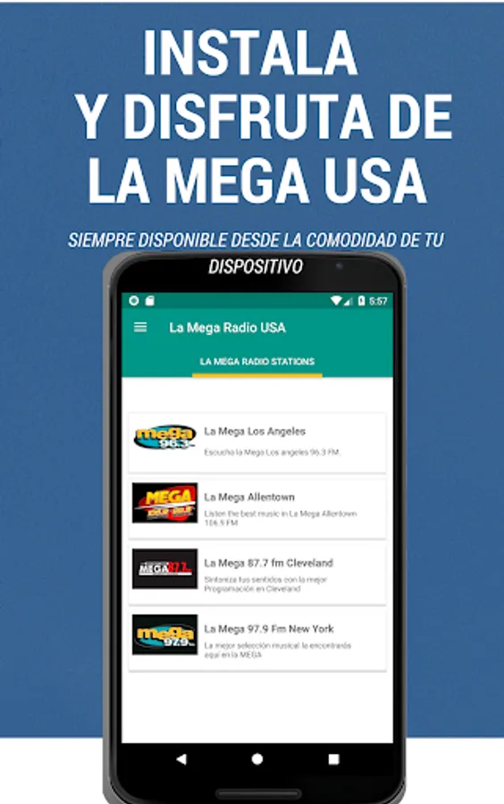 La Mega 97.9 Fm New York, La Mega 87.7 fm Cleveland, La Mega Allentown 106.9 FM, La Mega Los Angeles 96.3 FM, La Mega Houston 101 FM and more.