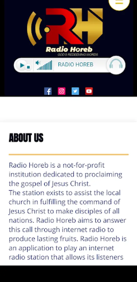 The station exists to assist the local church in fulfilling the command of Jesus Christ to make disciples of all nations. Radio Horeb aims to answer this call through internet radio to produce lasting fruits. Radio Horeb is an application to play an internet radio station that allows its listeners to enjoy various gospel music genres—Haitian, American, and instrumental classical, merely to name a few.