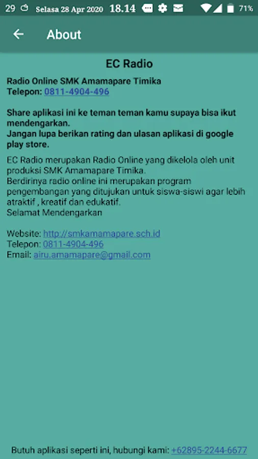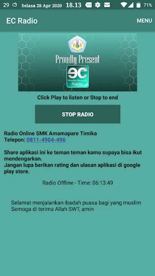 EC Radio is an Online Radio that is managed by the Amamapare Timika Vocational Production unit.