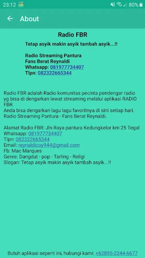 FBR Radio Address: Jln Raya pantura Kedungkelor km 25 Tegal