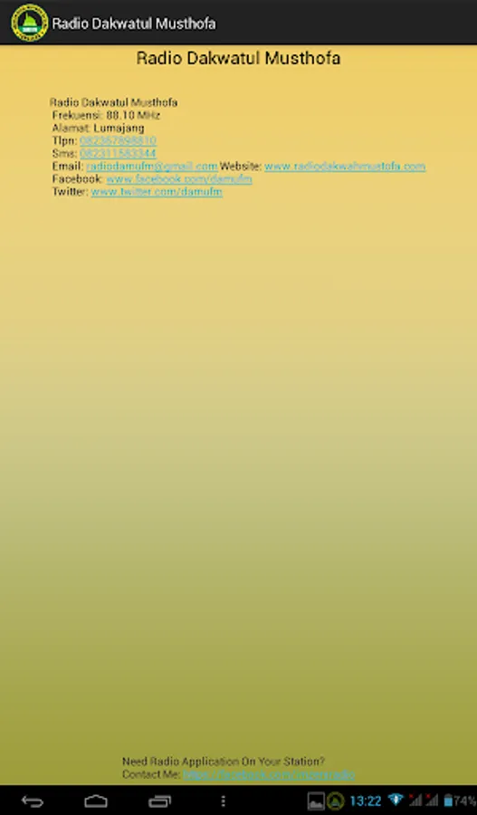 Contact: radiodakwahmustofa.com/kontak-kami Email : radiodamufm@gmail.com