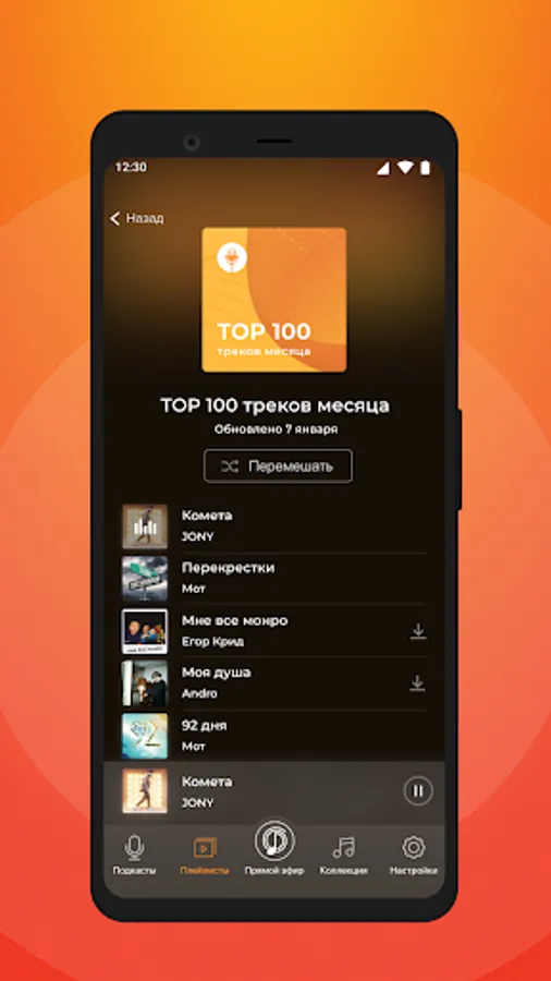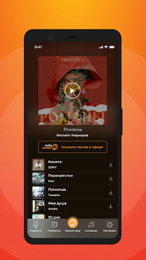 You can listen to our radio on the website radio.kartina.tv on any computer, any mobile system or internet radio device and off course using our Set-Top-Boxes. To listen to live radio streaming you will need an internet connection (EDGE, 3G or WiFi). The application, which is designed entirely in Russian, can be used also in the background.
