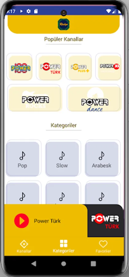 Acoustic - Arabesque - Baby - Religious - World Music - News - Folk Music - Jazz - Campus - Black Sea Music - Classical - Nostalgia - Original Music - Pop - Rap - Rock - Slow - Sports - Poetry - Turkish Classical Music - Foreign Music