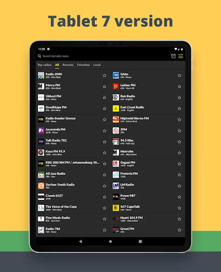 πΏπ¦ Listen live to the best South African FM radio, AM radio and internet radio stations with our Radio South Africa app! Choose what you want to listen to: news, sports, talk, music and follow your favorite shows!