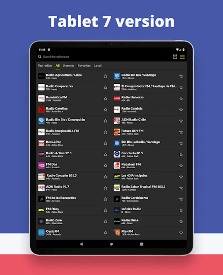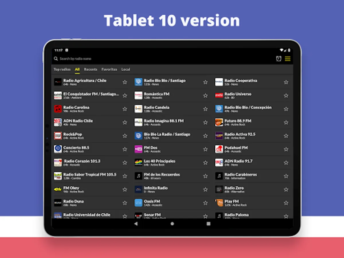 With an easy to use, fast and modern interface, Radio Chile offers you the best online listening experience without subscription or payment to access the application! Also take advantage of our widget for even more pleasant and simple access and listening!