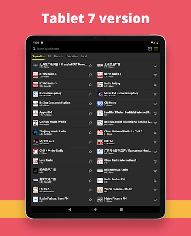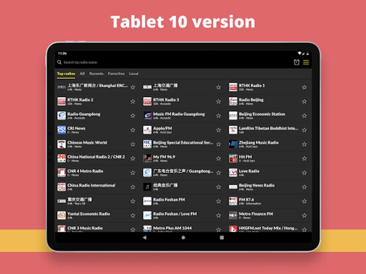 With an easy to use, fast and modern interface, Radio China offers you the best online listening experience without subscription or payment to access the application! Also take advantage of our widget for even more pleasant and simple access and listening!