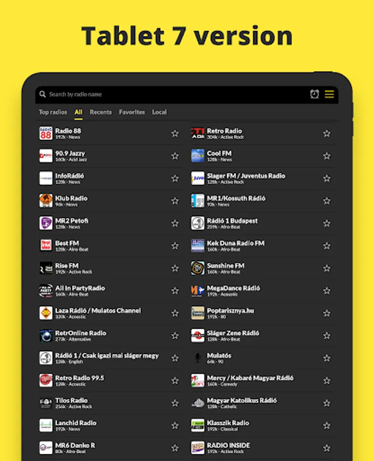 With Radio Hungary listen to streaming all your favorite radio stations like 1 Budapest, Retro 99.5, Sláger, MR1 Kossuth, Magyar Mulatós, Nosztalgia, Laza, MR2 Petofi, MegaDance, SuperDj, Mercy, Poptarisznya.hu, Rise, Pesti Kabaré, Sunshine and discover many other radios thanks to our suggestions!