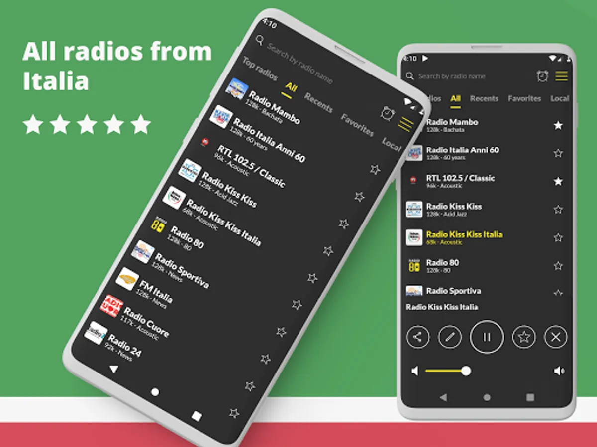 đŽđš Listen live to the best Italian FM radio, AM radio and internet radio stations with our Radio Italy app! Choose what you want to listen to: news, sports, talk, music and follow your favorite shows!