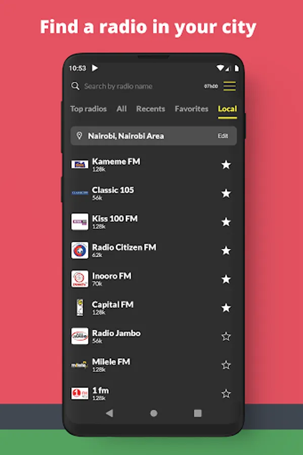 đ°đĒ Listen live to the best Kenyan FM radio, AM radio and internet radio stations with our Radio Kenya app! Choose what you want to listen to: news, sports, talk, music and follow your favorite shows!