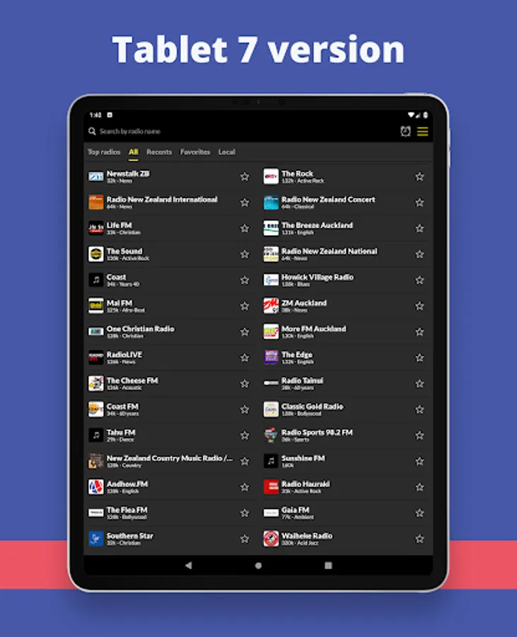 With Radio New Zealand, listen to streaming all your favorite radio stations like Newstalk ZB, The Edge, Coast, RNZ National, Mai, Magic Talk, Classic Hits 90, Flava, Sports 98.2, New Zealand International, Easy 80s, Base, 936æ°éģå°, Dunedin, Niu and discover many other radio stations thanks to our suggestions!