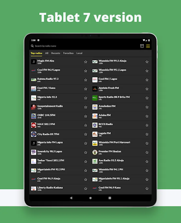 With an easy to use, fast and modern interface, Radio Nigeria gives you the best online listening experience without any subscription or payment to access the app! Also take advantage of our widget for even more pleasant and simple access and listening!
