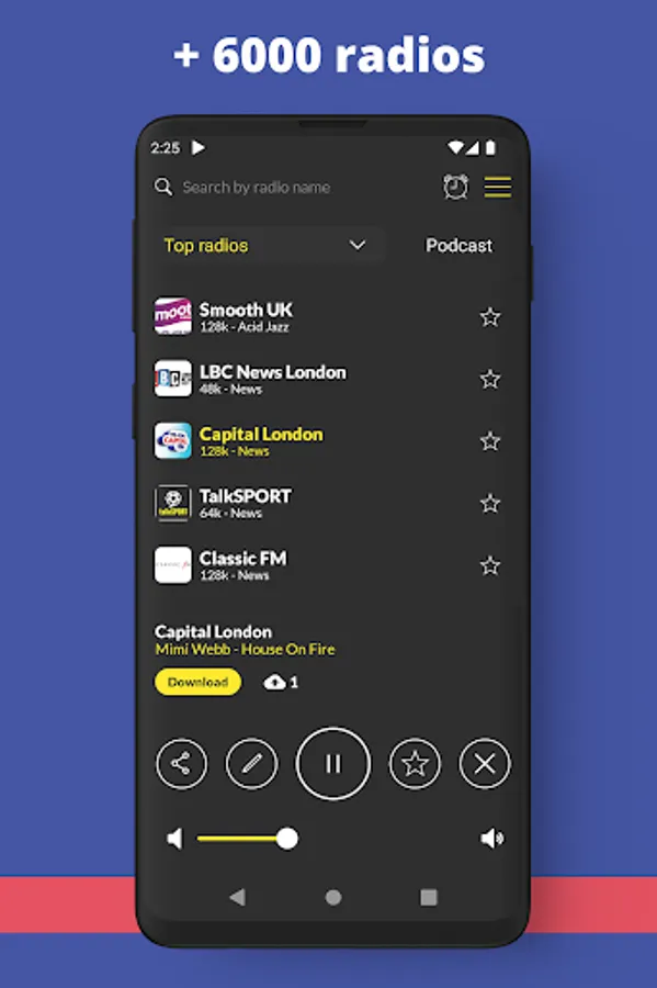 â Listen to the radio while using other apps or in sleep mode of your smartphone
