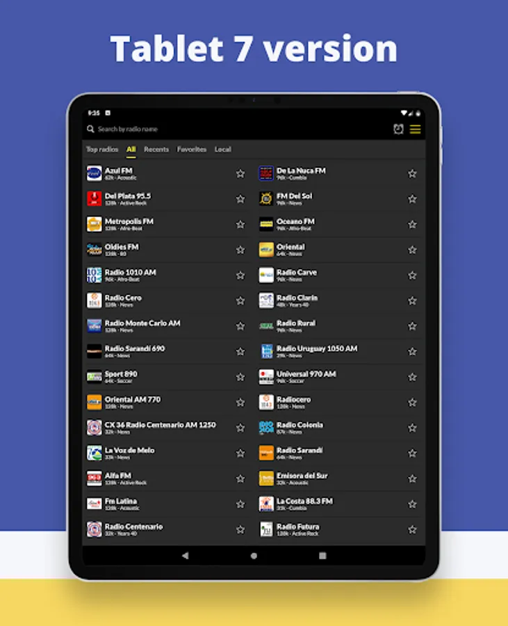 With an easy to use, fast and modern interface, Radio Uruguay offers you the best online listening experience without subscription or payment to access the application! Also take advantage of our widget for even more pleasant and simple access and listening!