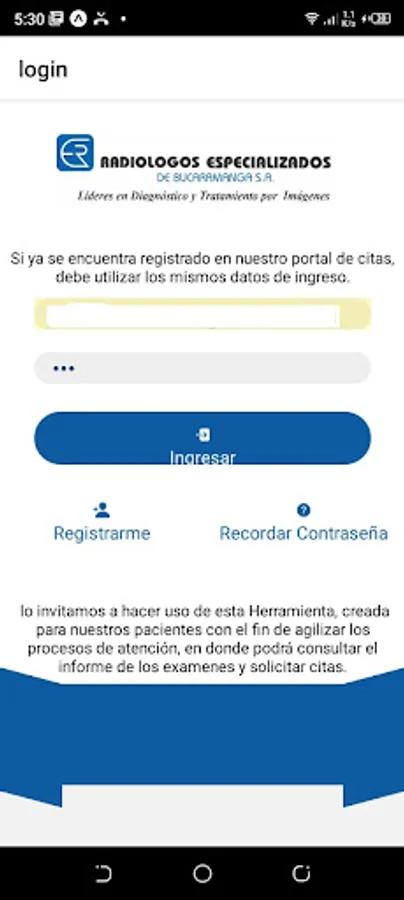 Portal for patients of Specialized Radiologists of Bucaramanga S.A, for: