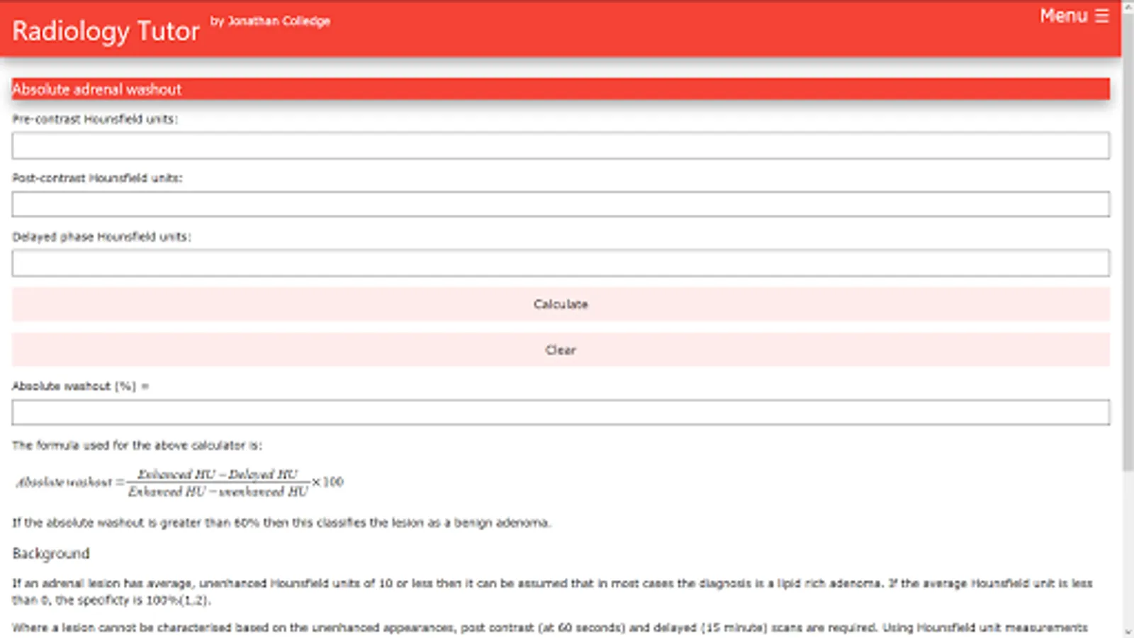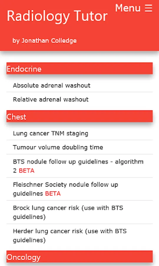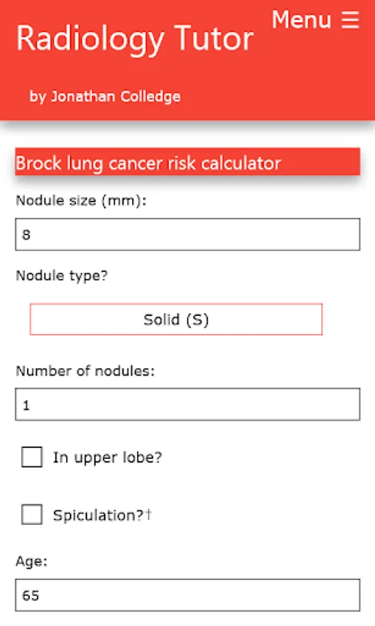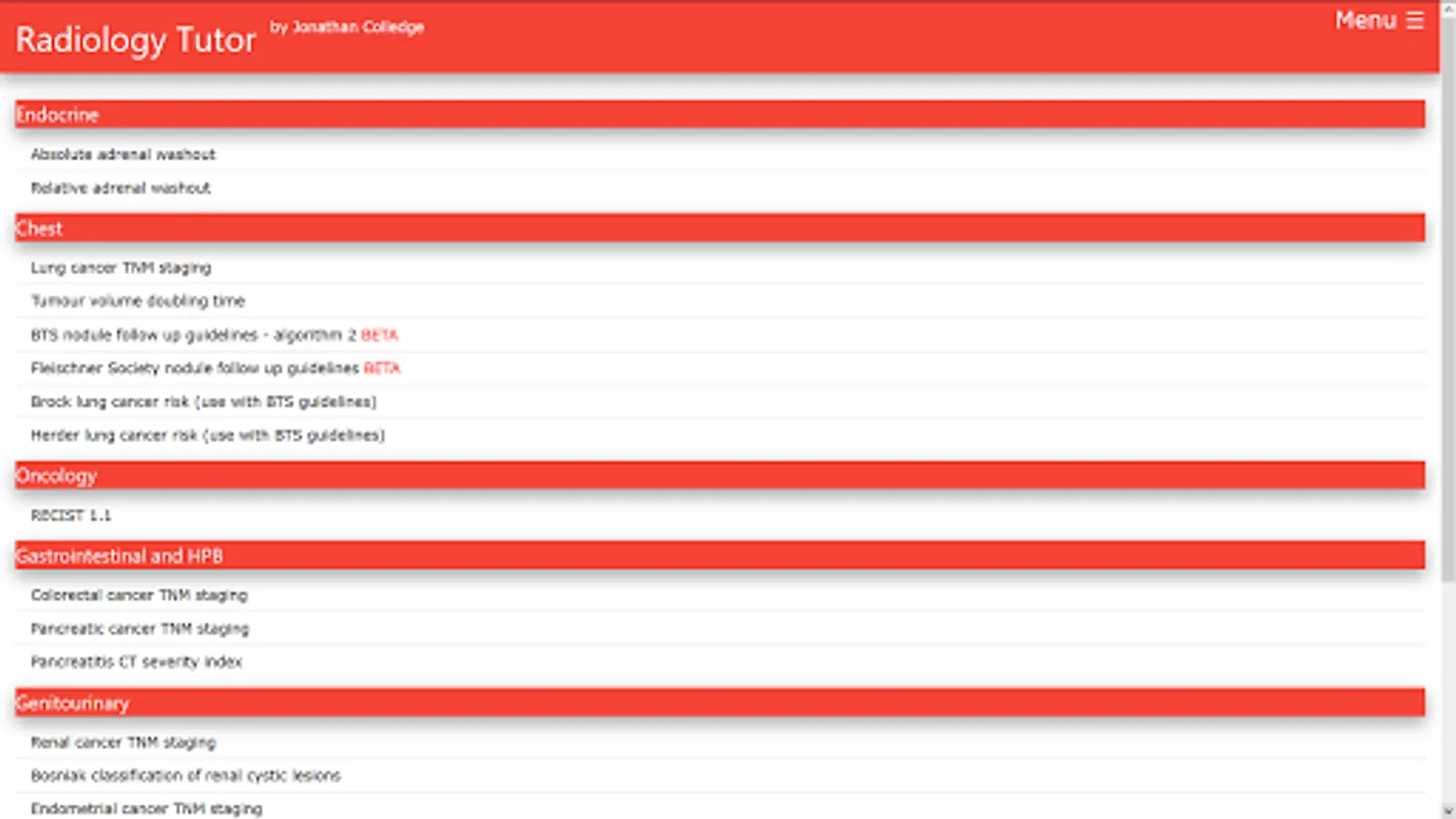 Legal disclaimer: Radiology Tutor is intended for information only rather than diagnosis or treatment guidance. The content may not be used or relied upon for any purpose, including but not limited to legal proceedings. The content may be changed without notice and is not guaranteed to be complete, accurate or correct. As with any printed material the content of Radiology Tutor may become out of date and the author undertakes no obligation to update the content. However, where content updates are available it is your responsibility to ensure that you use the most up-to-date version of Radiology Tutor. The author takes no responsibility and gives no warranties whatsoever in respect of the results or consequences of any attempt to use or adopt any of the information presented by Radiology Tutor. Any results provided by Radiology Tutor should be confirmed by reference to best practice and any relevant clinical guidelines. Even if a statement made is accurate, it may not apply to you or your patient.