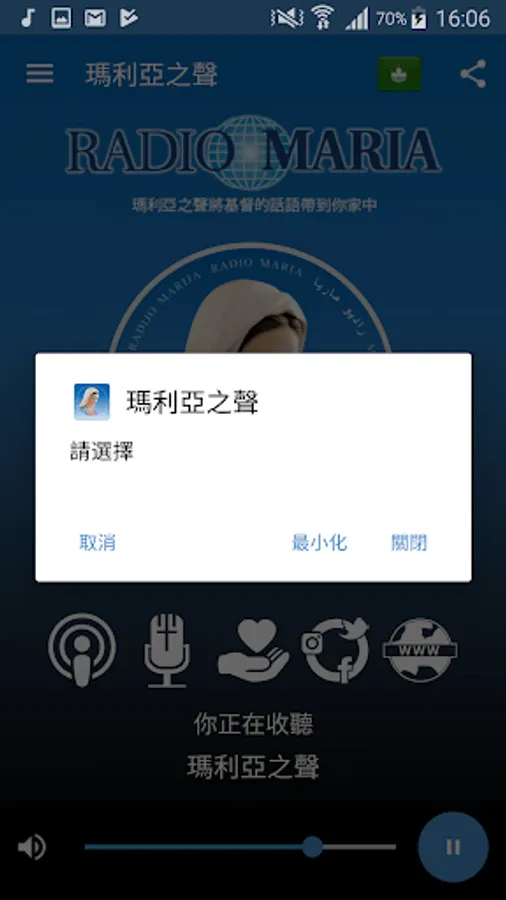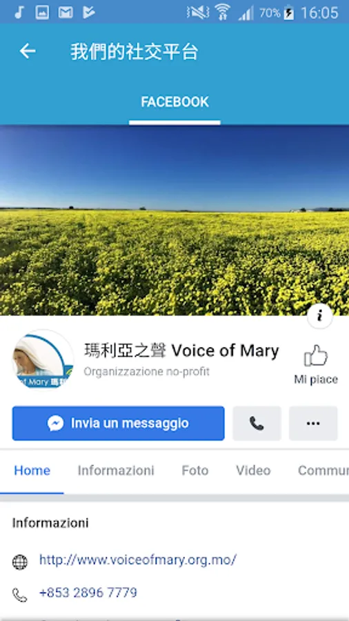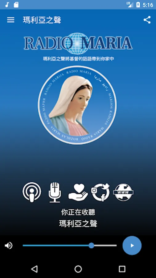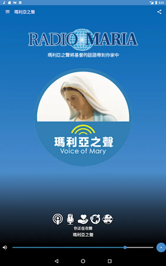 The Chinese version of the Voice of Maria was officially launched in July 2015. According to the teachings of the Catholic Church, the message of the gospel of joy and hope, in the spirit of the Virgin Mary, becomes a tool to comfort the sick and the poor, promote peace and promote human values through mutual communication.