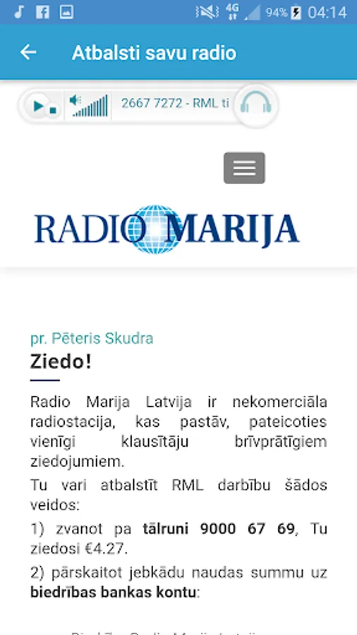 Radio Maria voice sounds 24 hours a day. Programs for listeners as your friends, regardless of their religion, are trying to give Christ the Good News - the Gospel, as well as a clear Catholic teaching of the Church. We strive to enhance the prayer experience and provide the opportunity to look at the entire human cultural diversity. Radio Maria in the world runs on volunteer service basis. Radio Maria is a family that unites different ages, different denominations, different social strata of people, allowing each to be inappropriate and to give their contribution to proclaim the Word of God, and joint prayer experience.