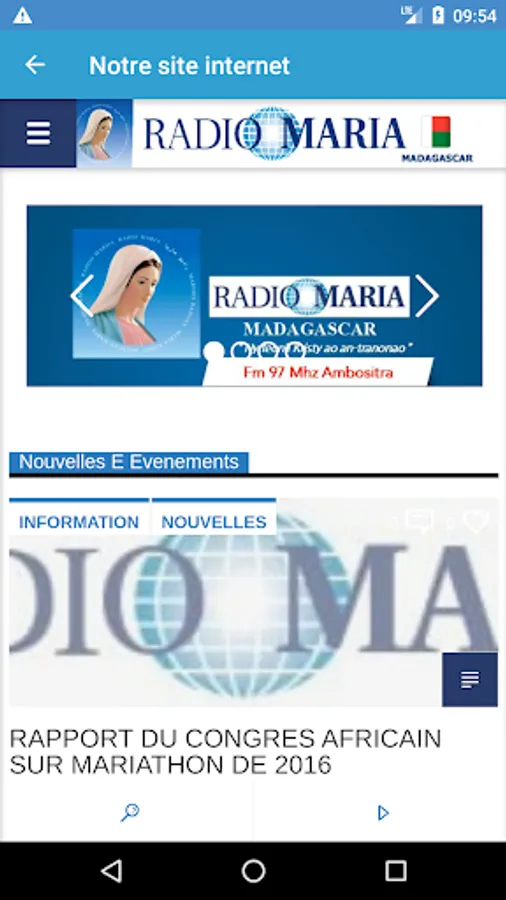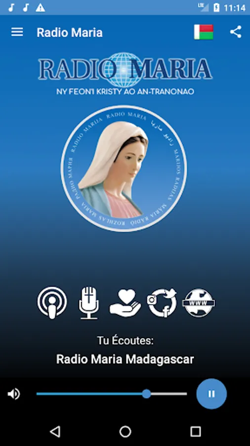 Radio Maria Madagascar was born by the thirst of the Bishop His Excellency Monsignor RAKOTONARIVO Fidelis, Ordinary of the place of the Diocese of Ambositra which is located 300 km from the Capital of Madagascar to the South. The Region of Amoron'i Mania is equivalent to the Diocese.