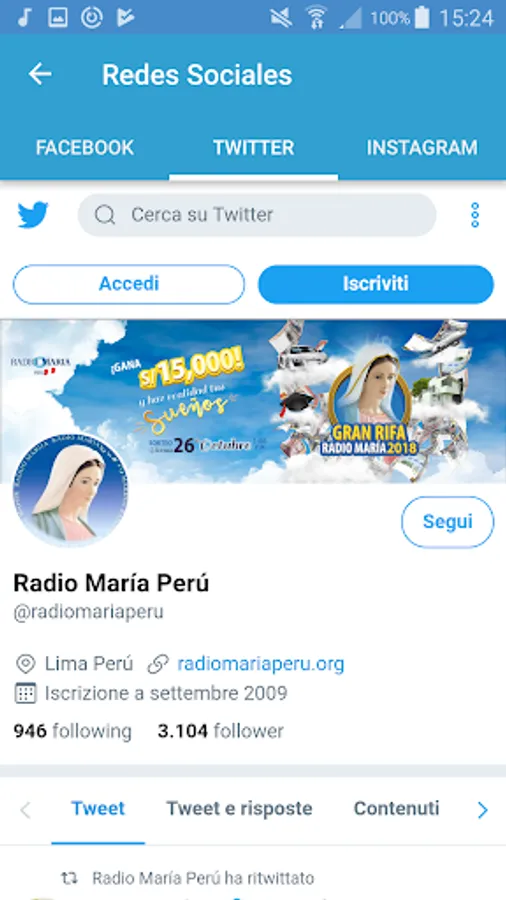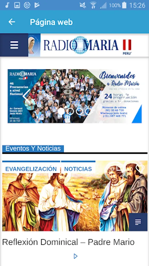 In July 1995 we received the apostolic blessing of Pope John Paul II. And the president of Radio Maria Italy Emanuelle Ferrario, confirmed support for Radio Maria in Peru. We have 46 repeaters in Peru.