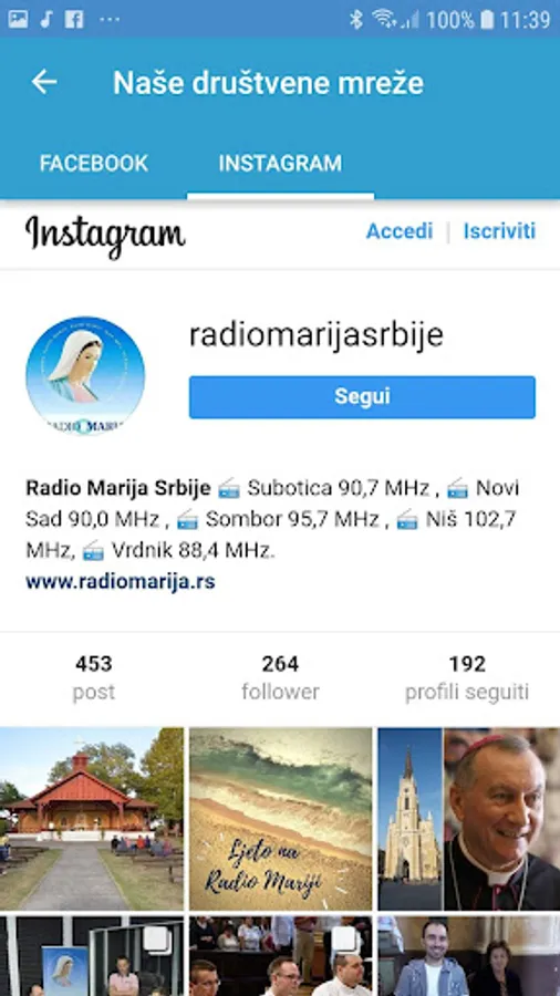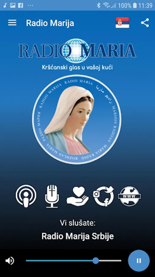 Radio Maria Serbia is the only Catholic radio in Serbia and is part of a worldwide network - World Family of Radio Maria (World familly of Radio Maria). The mission of this radio is to spread the Good News of the Gospel of Jesus Christ. Its program follows the life and events in the field of four dioceses - Subotica, Belgrade, Zrenjanin and Srijemske. In addition to monitoring and developments in the local church communities. The program is realized on the Croatian-Serbian and broadcasts programs in minority languages - Ruthenian, Ukrainian, Slovak and German language. Program of Radio Maria Serbia has one third of spiritual and religious content, one third under the name of human promotion with an emphasis on science and culture, and one-third of which was filled with music content.