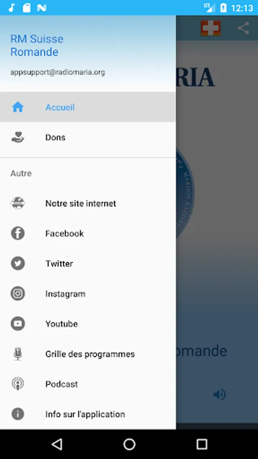 "Your new Catholic radio station in French-speaking Switzerland. Listen to live masses from your parishes in French-speaking Switzerland, our testimonial, spirituality broadcasts and all your favorite programs. Radio Maria Suisse Romande is your regional Catholic radio station."