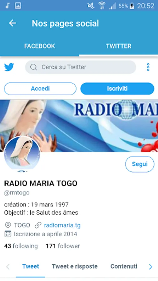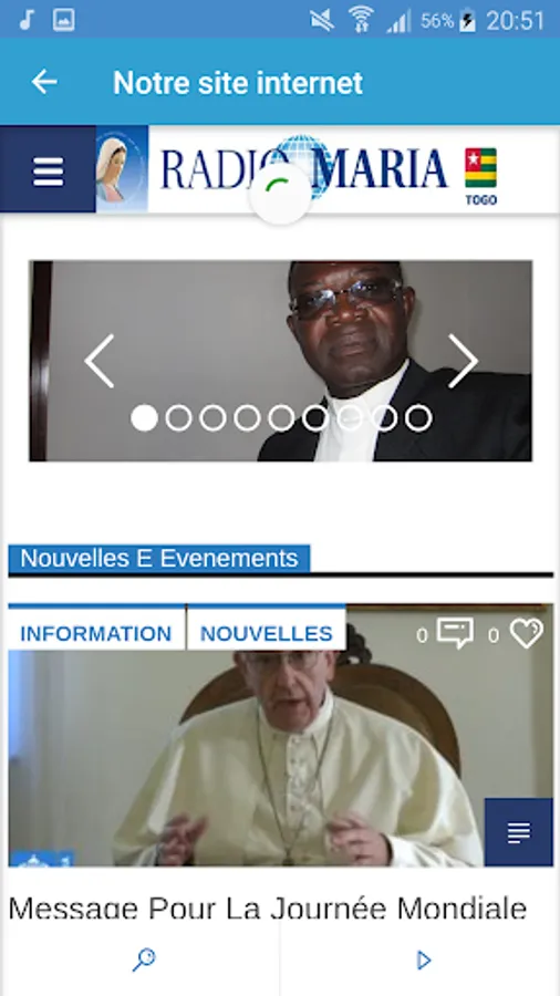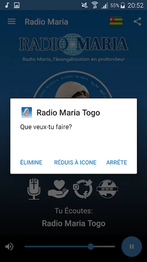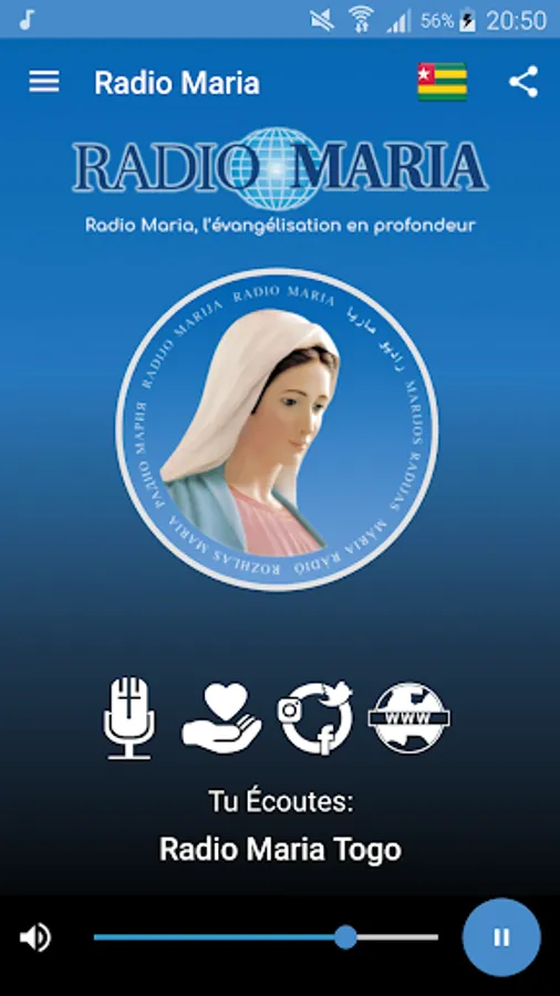 Radio Maria Togo was created on March 19, 1997 by Bishop Philippe Fanoko KPODZRO, then Archbishop of Lome. RMT has 4 stations in the dioceses of Dapaong, Kara, Kpalimé, Atakpamé and a relay station in Sotouboua, diocese of Sokodé. RMT has more than 200 volunteers