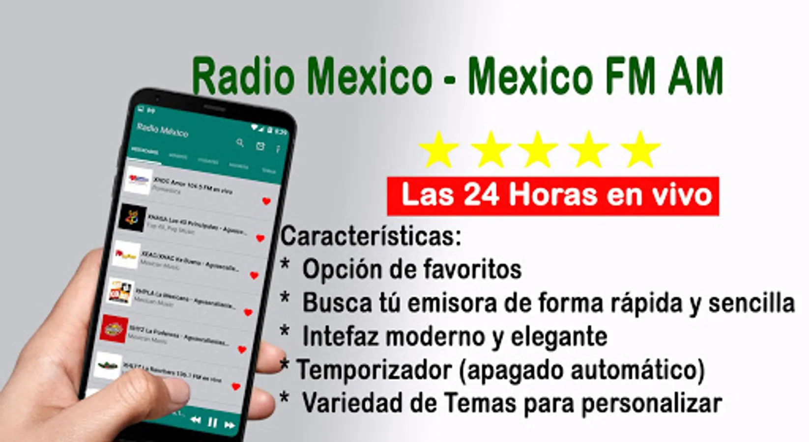 Free radios de Mexico AM FM is an application with which you can listen to News, Music, sports, from your cell phone. Now you can listen to free live radio mexico from your favorite anywhere. You will listen to your favorite radio Radios de Mexico free am and fm live app.
