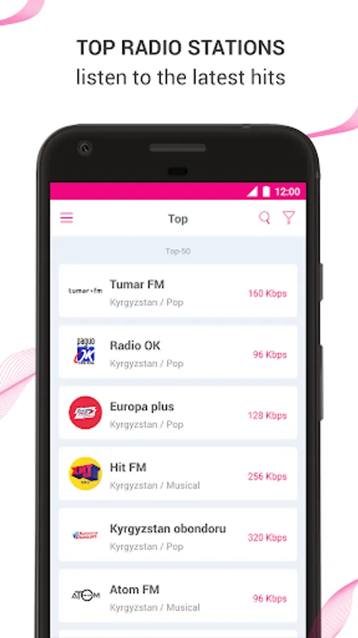 • Dynamic TOP 15 of the most popular radio stations
