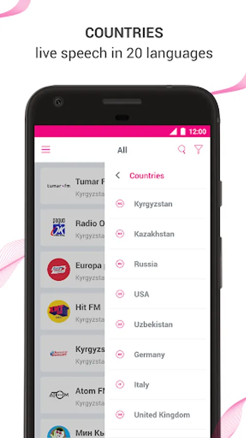 Listen to radio stations in English, German, French, Spanish, Russian, Italian and improve your listening skills!