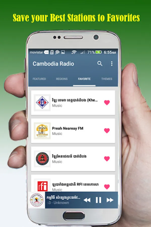 You listen to all Cambodians radio stations for free. Enjoy internet radio in the best online radio application.