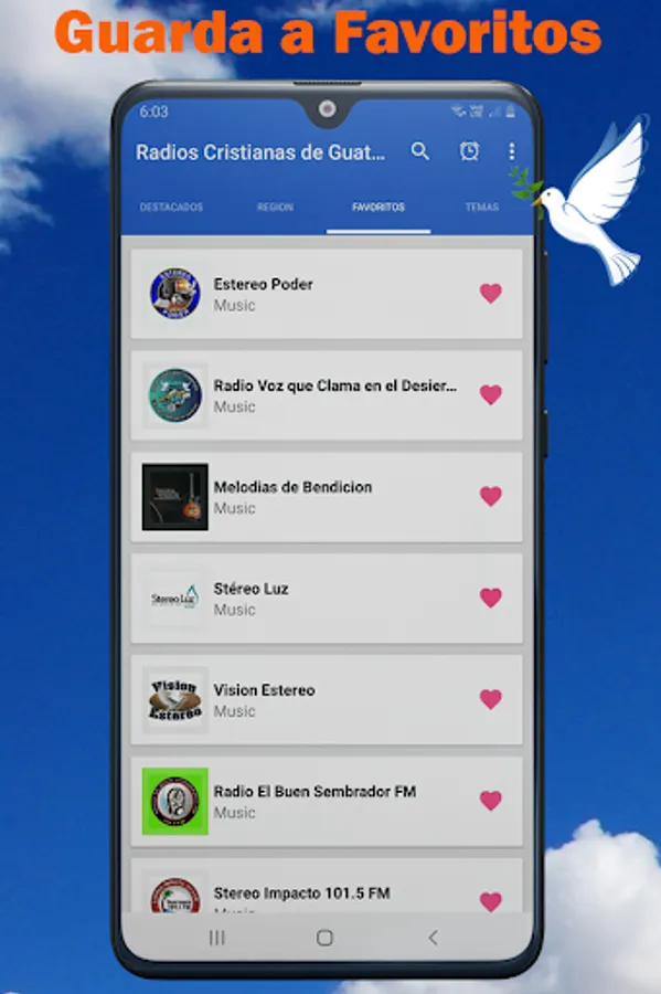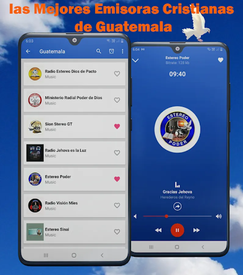 The new Guatemalan Evangelical Radios allows you to connect to more than 50 Guatemalan Christian stations and live radios, am radio, FM radio, online, state and local radio. Now you can listen to them wherever you are, just by moving a ☝ finger.