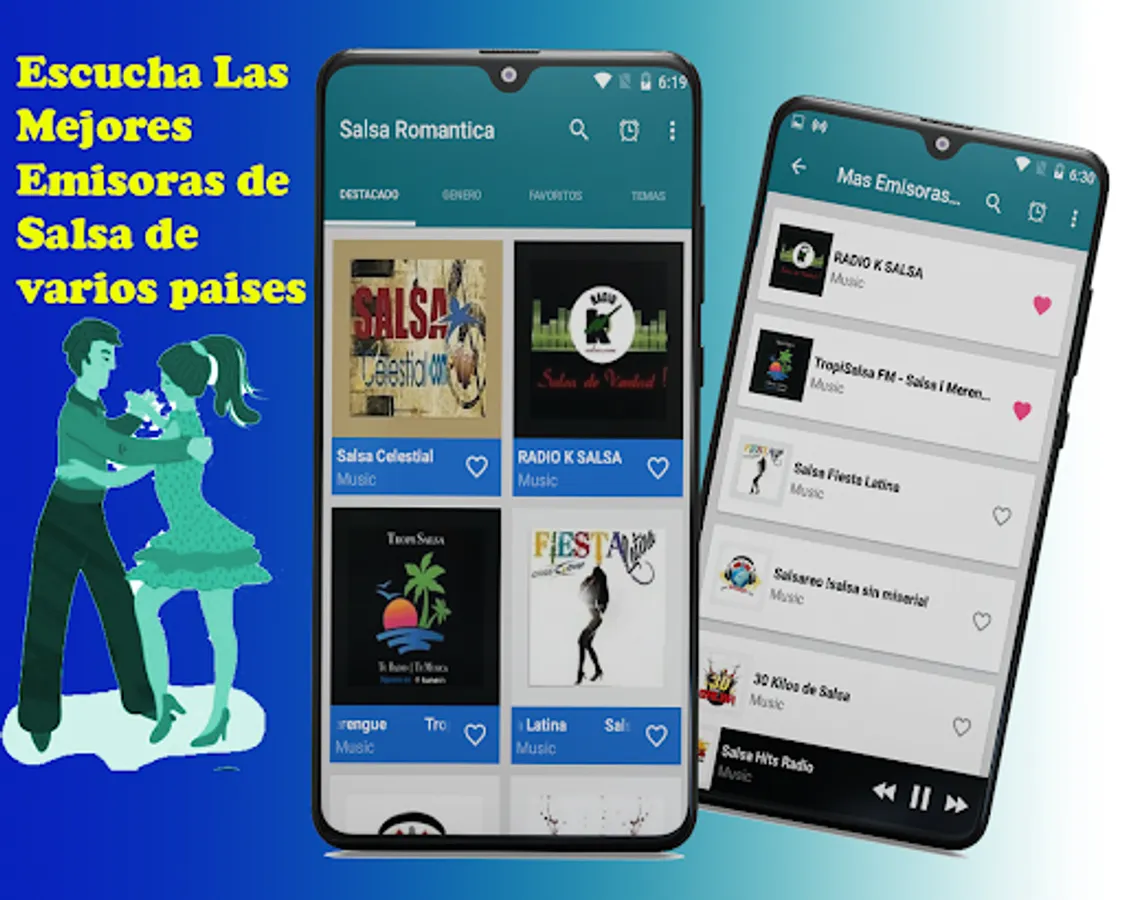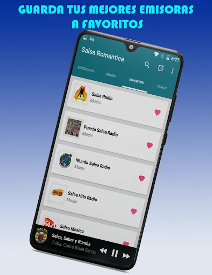 The new one Salsa Music Radio allows you to connect to more than 100 salsa stations and live radios from various countries, AM radio, FM radio, online radio, state and local. Now you can listen to your stations wherever you are, just by moving a ☝finger.