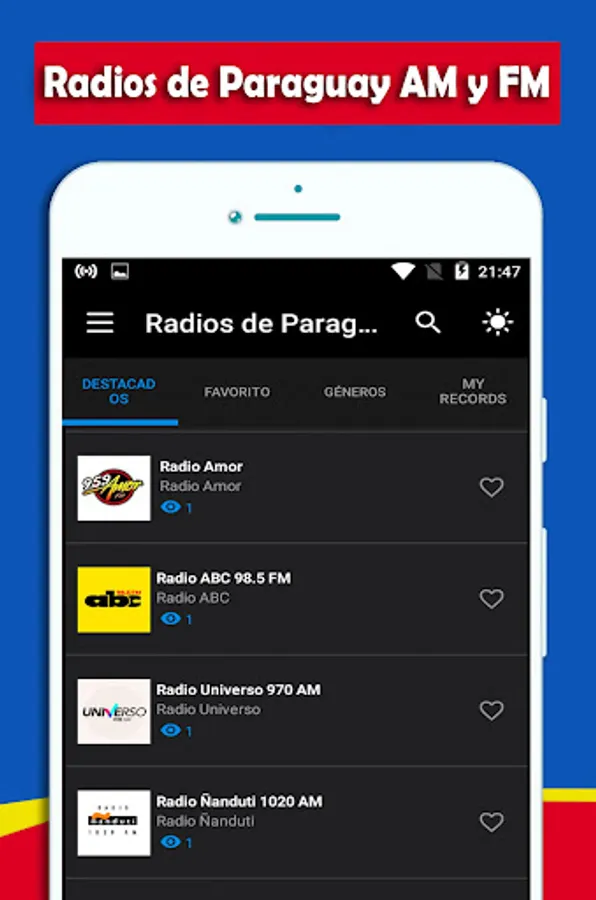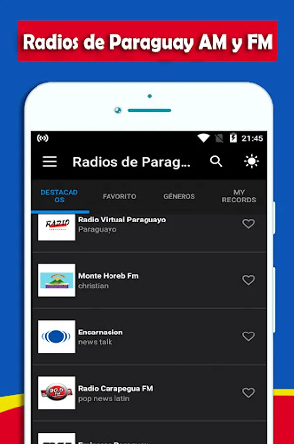 Radios of Paraguay live and Listen to your Live Radio Stations, Favorites and enjoy your transmissions of radio stations Paraguay am and fm live app has for you.