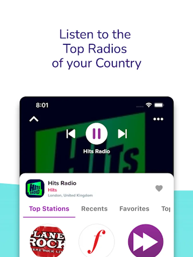 - By opening the app, RadioPhone will show the Top selected stations in your country.