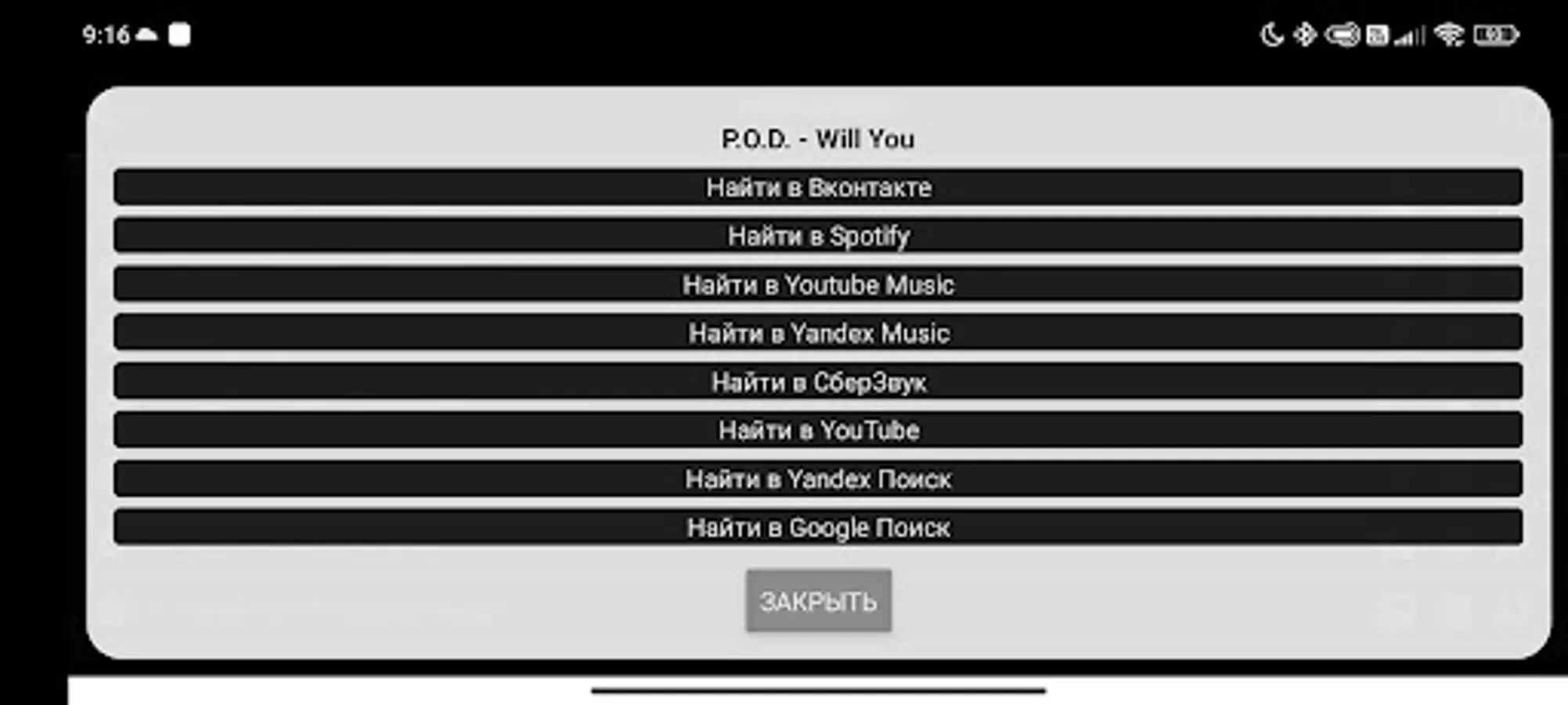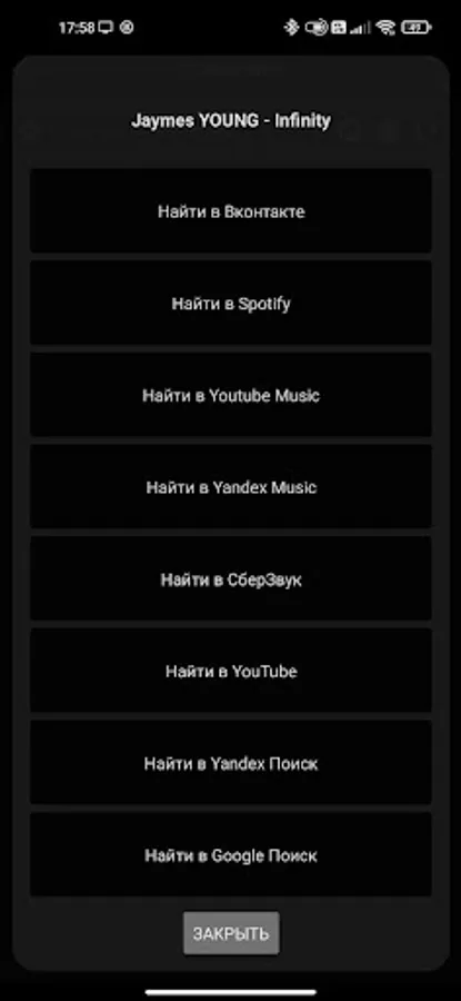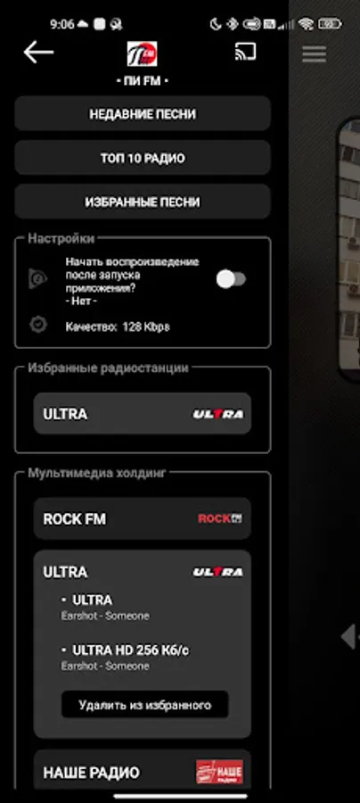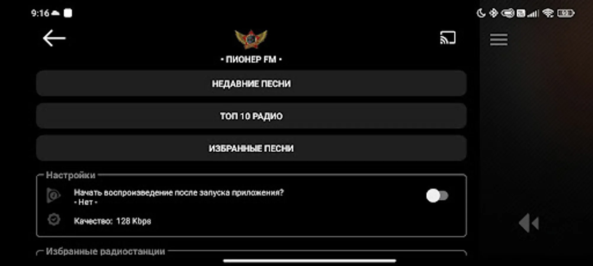 While listening to the radio, you can easily add your favorite song to your favorites and find it in popular music services at any convenient time. By clicking on the cover, you can view the lyrics of the song, and by clicking on the title of the song, you can read information about the artist, share the song, copy its title to the clipboard or add to favorites. There is support for Chromecast.