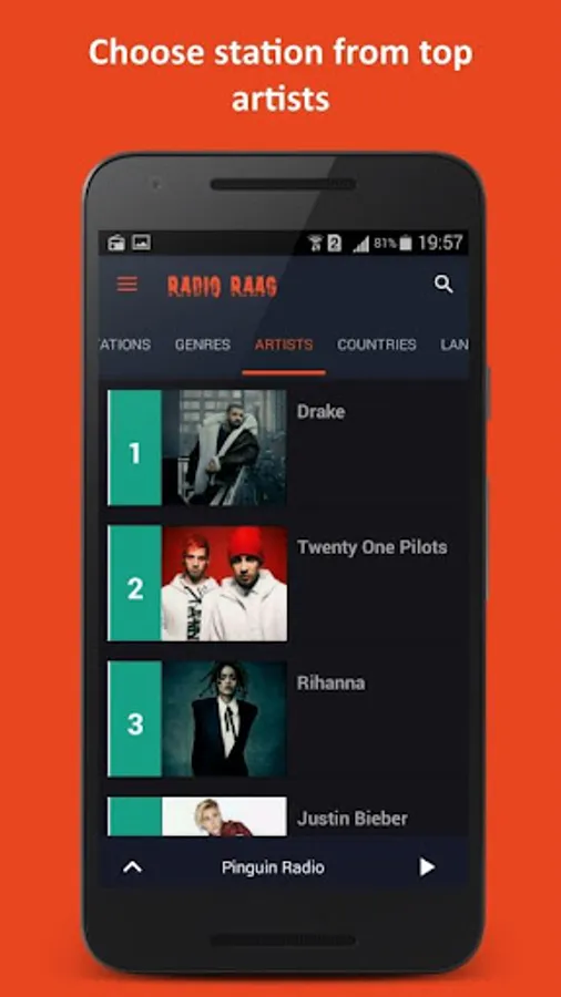 Now you can listen to over million of radio stations on the go from all over the World. You can listen to station by artist, country or genre.